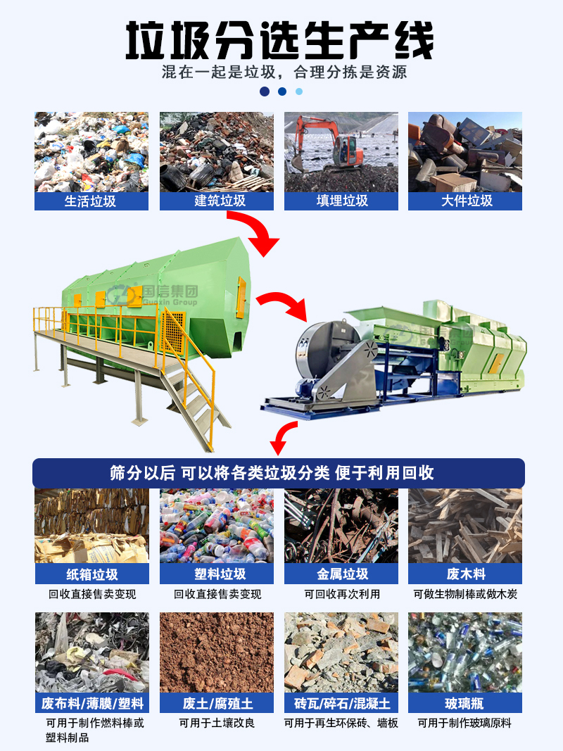 生活垃圾分選處理設(shè)備是城市環(huán)境管理中不可或缺的一部分,它通過先進(jìn)的技術(shù)和設(shè)備對生活垃圾進(jìn)行有效的分類和處理。這些設(shè)備通常包括粗分選、精細(xì)分選和深度加工三個層次的系統(tǒng)。